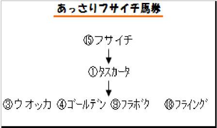 一番人気は大崩しないとデータ的に言われますが、こういう時にあるんですよねぇ意味不明の轟沈。でも色々考えてもフサイチをバッサリとはいけない自分がいます。